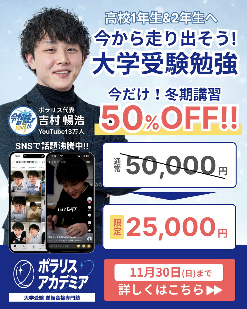 現役の時は勉強してはいるものの、なかなか成績が上がらず、浪人して上手く行くのが最初は不安でした。しかし、ポラリスの先生方による問題解決会議のサポートもあり、成績が伸び目標を達成することが出来ました。本当にありがとうございました。