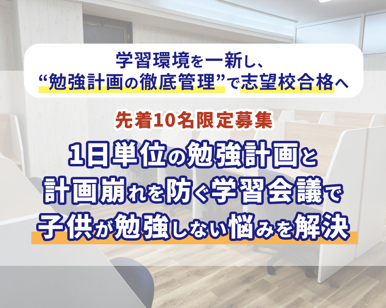 「計画を作る」だけで終わらせず、実行される状態に落とし込み、やり切るまで管理するいわゆる、強制的に環境を変える塾だと勉強が続く「仕組み」で成績が伸びるのです。