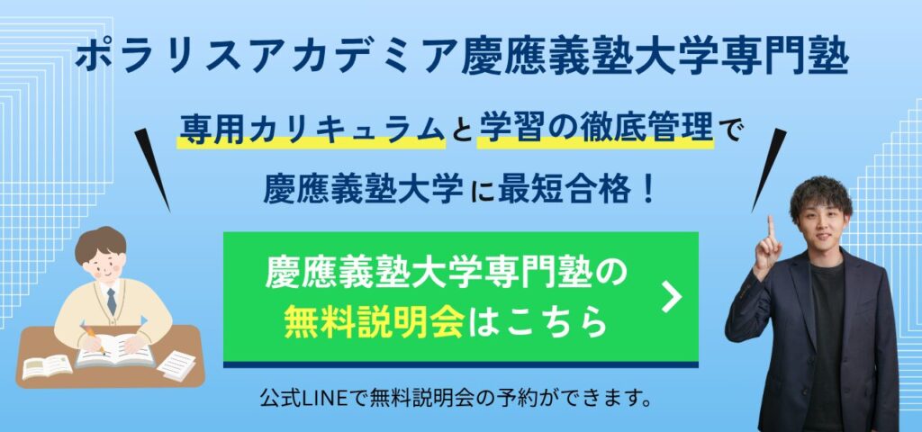 本気で慶應義塾大学に合格したい方、合格させたい親御さんはこの機会に公式LINEから無料入塾説明会に申し込んで、慶應義塾大学合格へ一歩近づきましょう!