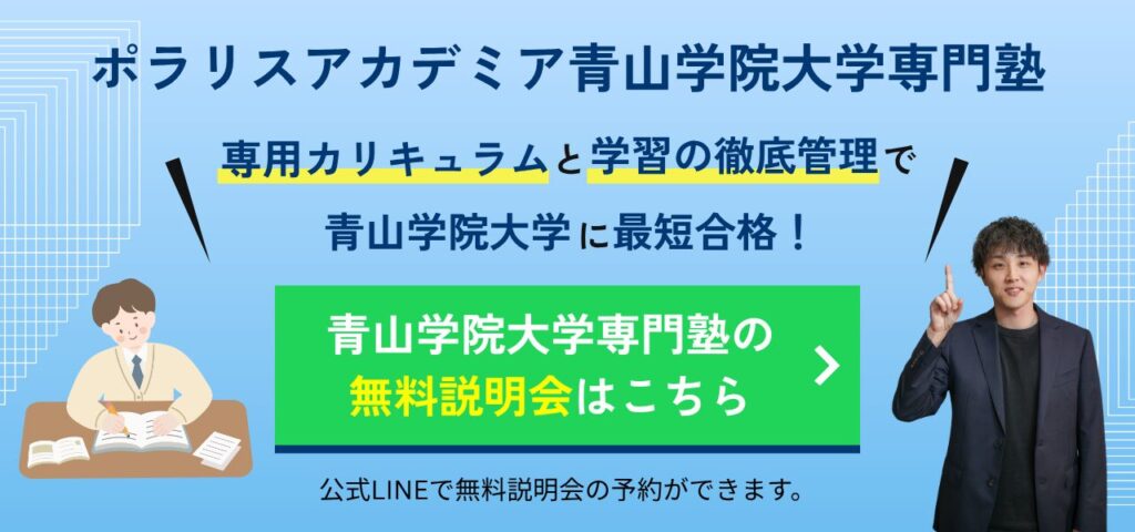 本気で青山学院大学に合格したい方、合格させたい親御さんはこの機会に公式LINEから無料入塾説明会に申し込んで、青山学院大学合格へ一歩近づきましょう!