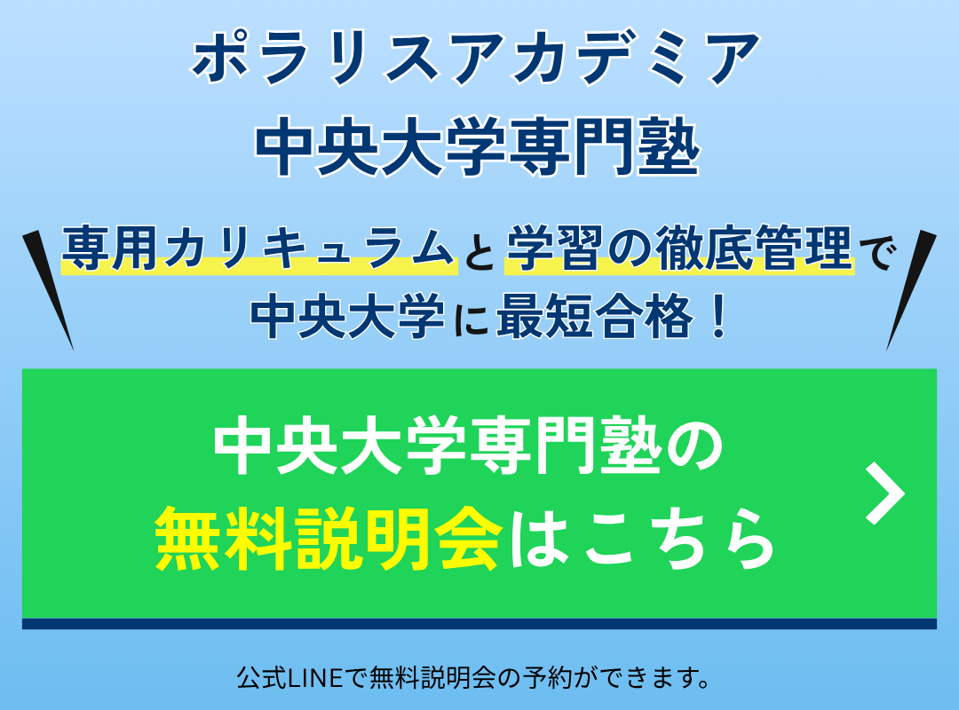 本気で中央大学に合格したい方、合格させたい親御さんはこの機会に公式LINEから無料入塾説明会に申し込んで、中央大学合格へ一歩近づきましょう!