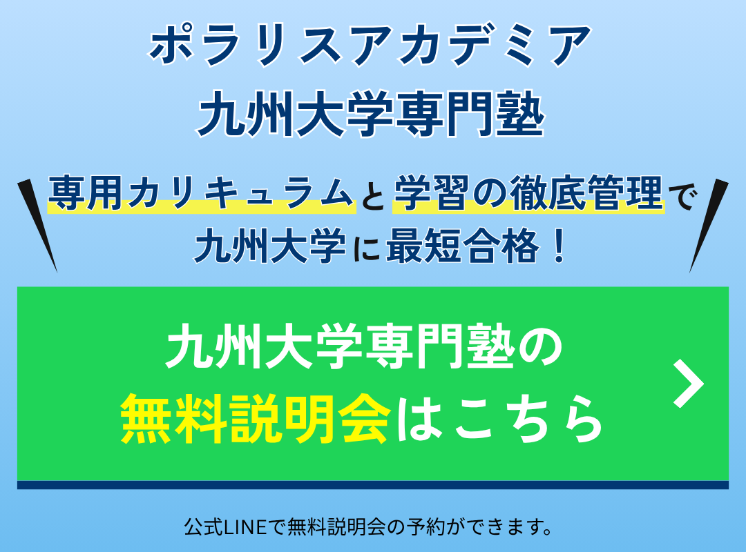 本気で九州大学に合格したい方、合格させたい親御さんはこの機会に公式LINEから無料入塾説明会に申し込んで、九州大学合格へ一歩近づきましょう!