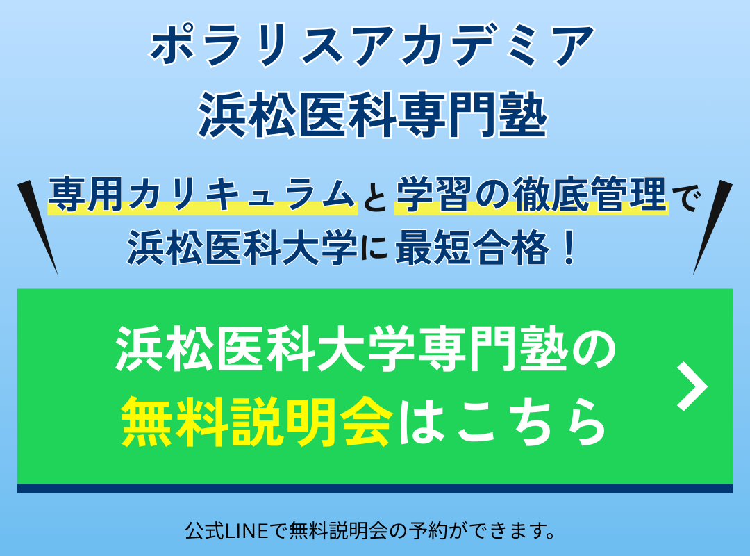 本気で浜松医科大学に合格したい方、合格させたい親御さんはこの機会に公式LINEから無料入塾説明会に申し込んで、浜松医科大学合格へ一歩近づきましょう!