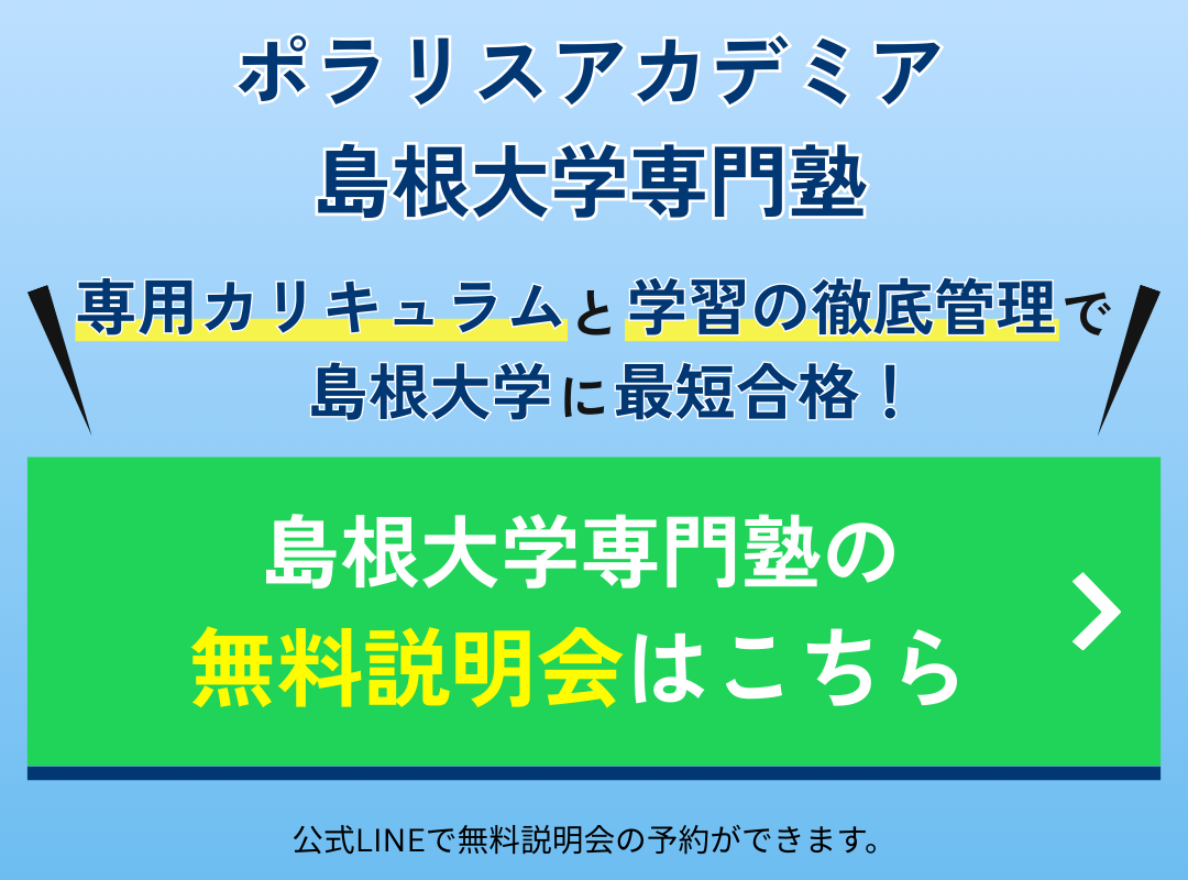 本気で島根大学に合格したい方、合格させたい親御さんはこの機会に公式LINEから無料入塾説明会に申し込んで、島根大学合格へ一歩近づきましょう!