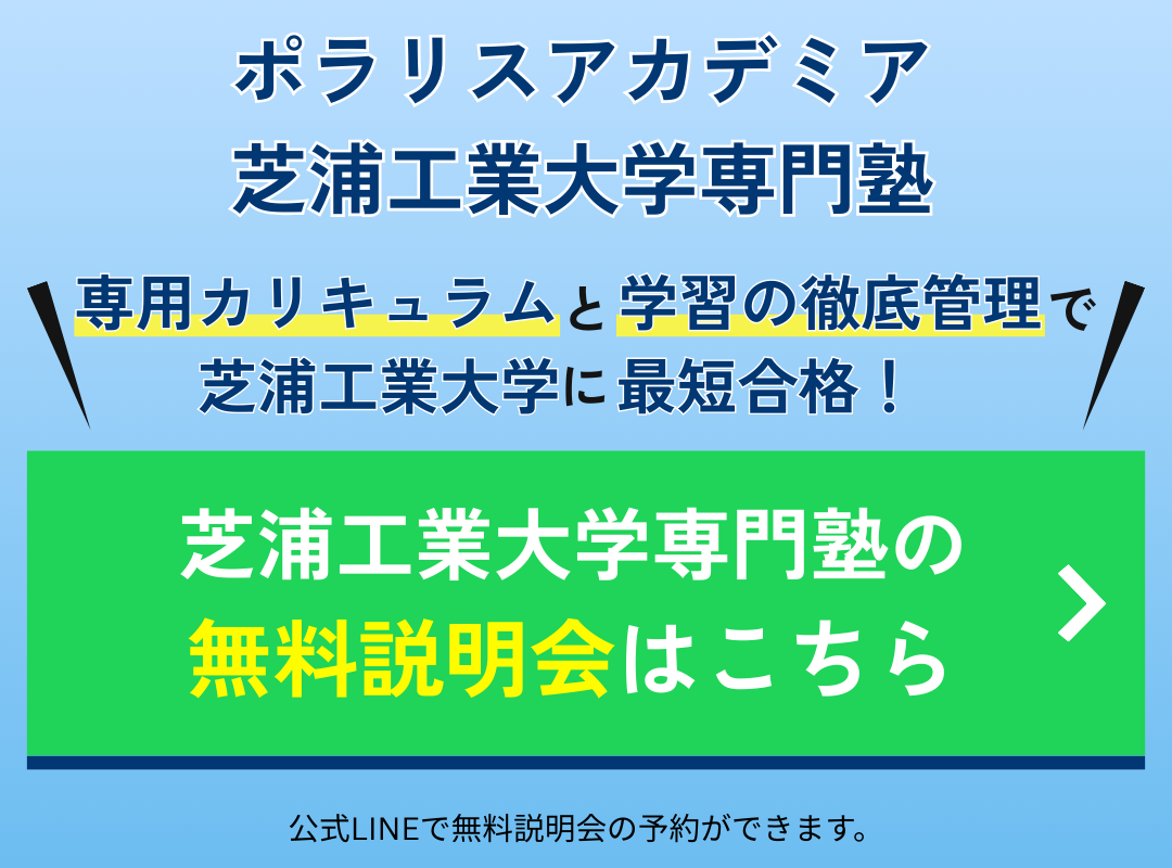 本気で芝浦工業大学に合格したい方、合格させたい親御さんはこの機会に公式LINEから無料入塾説明会に申し込んで、芝浦工業大学合格へ一歩近づきましょう!