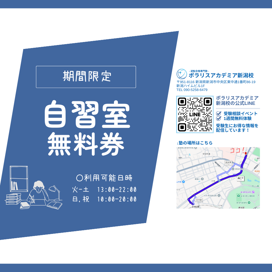 新潟市役所近くの自習室!自習室無料券をプレゼントします!