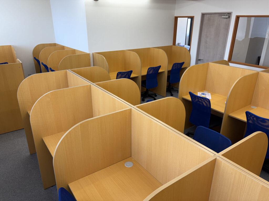 自習室は広々としていて、広い机で快適に勉強することができます!