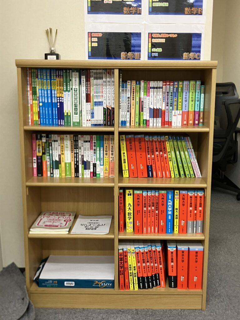 校舎には、様々な大学の過去問や各教科の参考書が沢山あります!