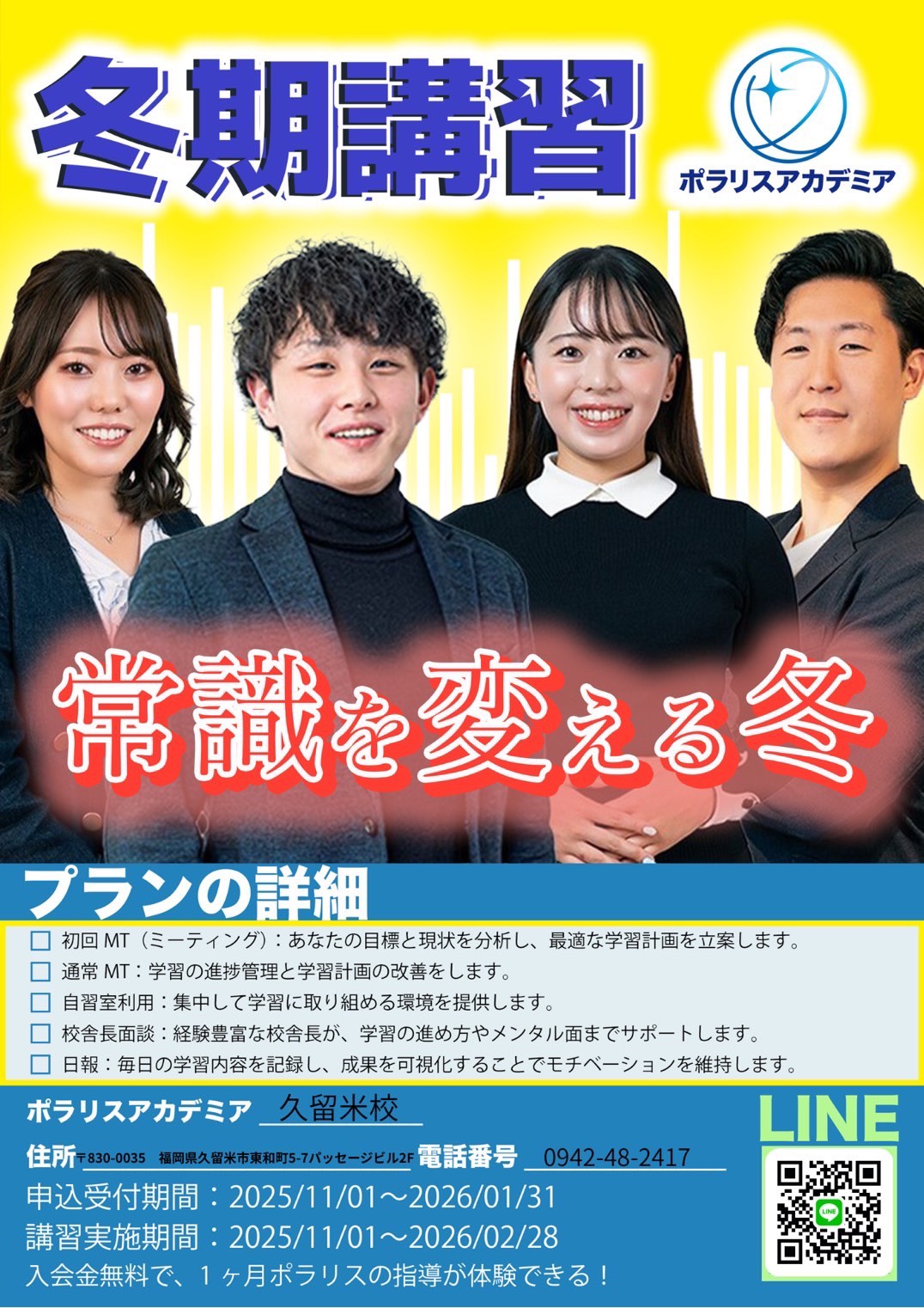 ―ポラリスアカデミア久留米校 冬季講習のご案内―