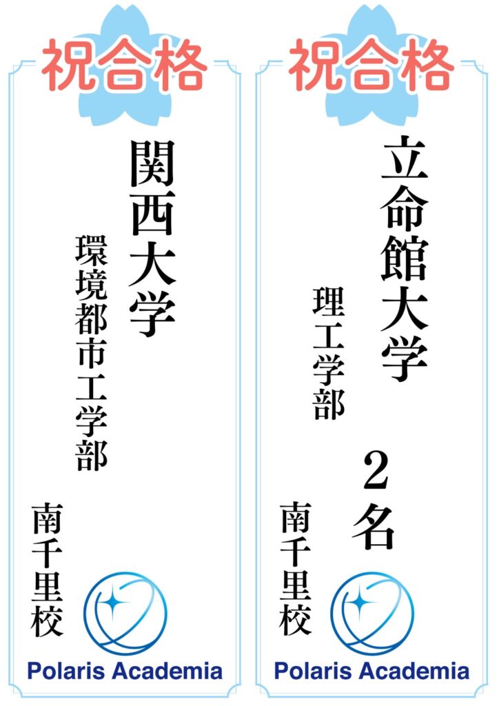 今回南千里校では3名が私大受験をし、全員受験校に合格いたしました!
