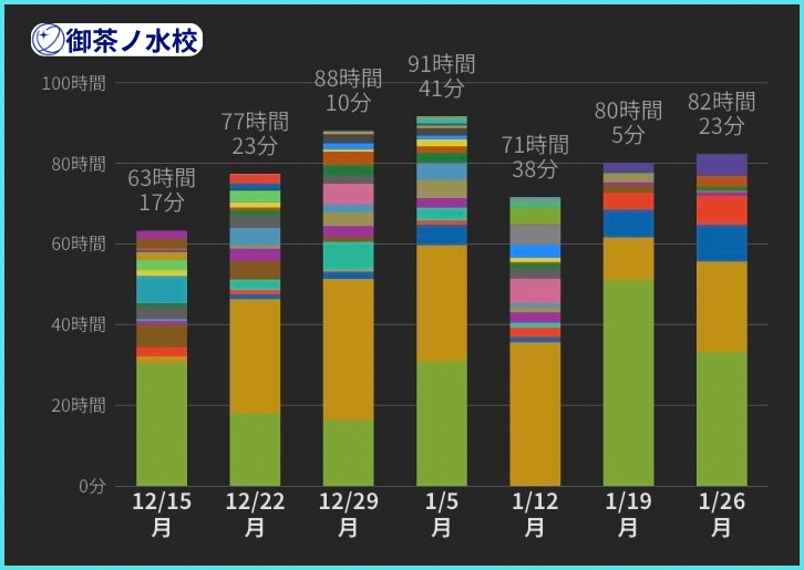 ⦅実際の勉強時間の記録(週ごとの合計)⦆