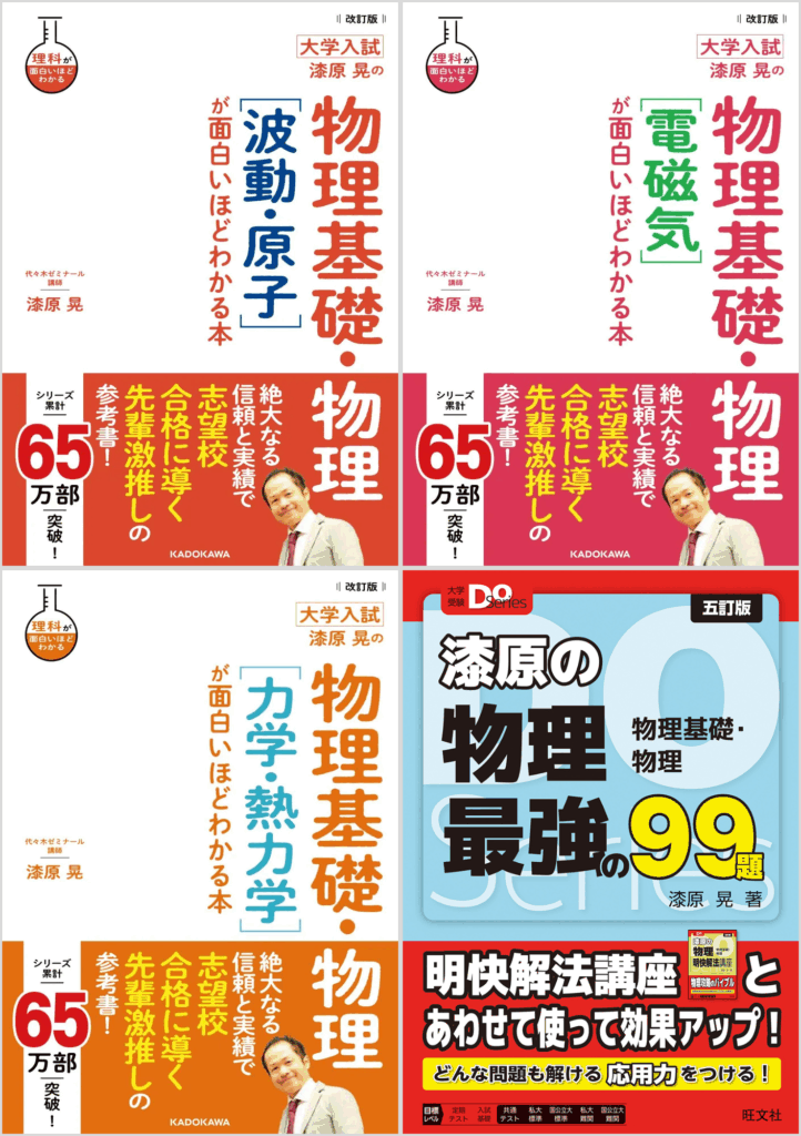 A:第1位「漆原晃の物理基礎・物理が面白いほどわかる本」「漆原の物理 最強の99題」
