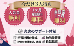 - 1ヶ月受講料無料:1ヶ月分の個別指導が無料になります!