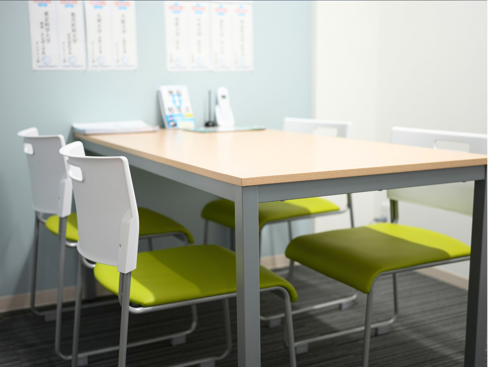 開校にあたり、校舎全体を一からリノベーションし、落ち着いて学べる空間に整えました。明るく清潔な自習室には、1人ひとりが集中できるよう仕切り付きの座席を完備。