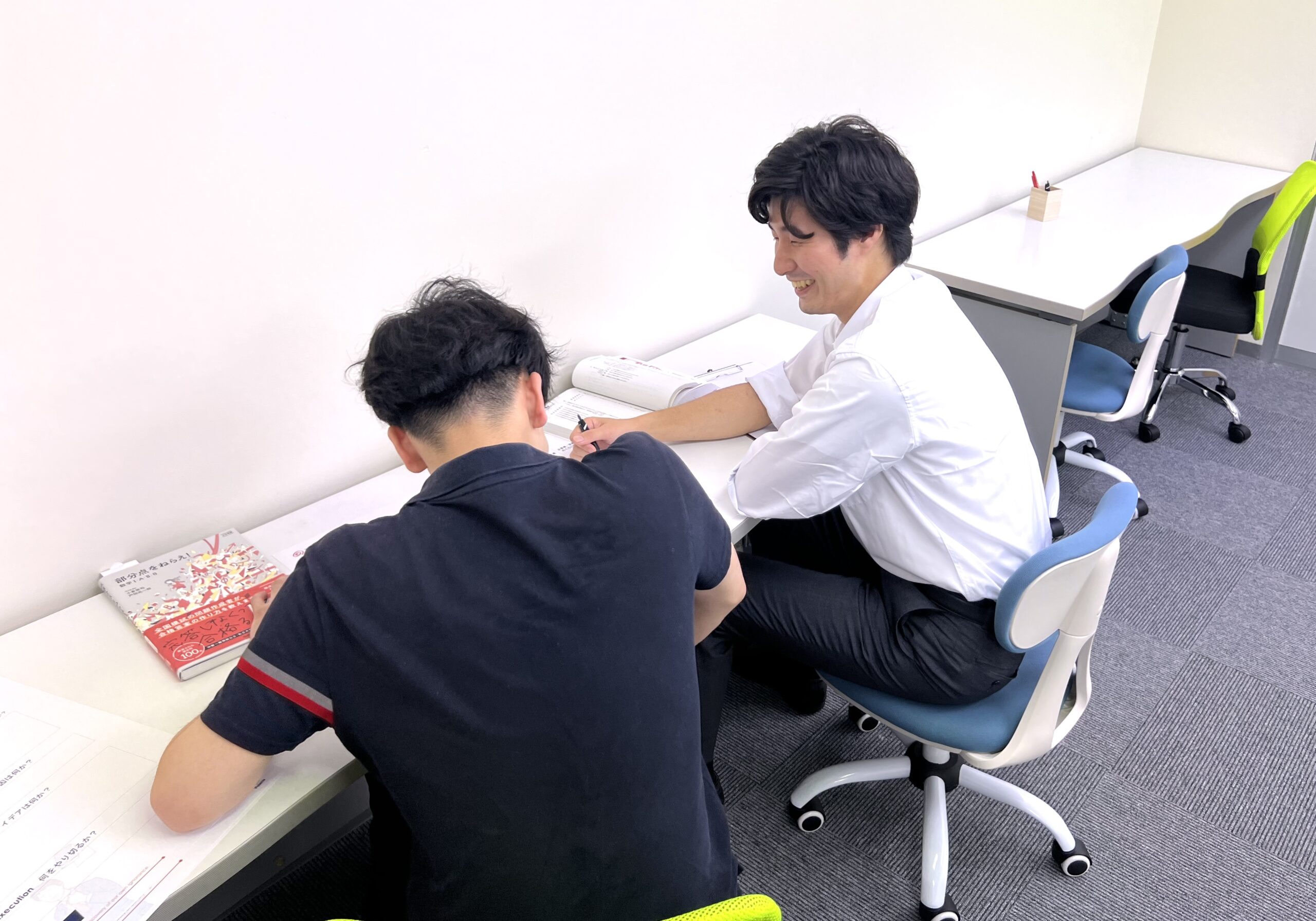 - 保護者様にもご参加いただく面談は年間4回実施しております。学習進捗確認・受験計画などをお話させていただく機会となっております。 また、生徒面談や来校時の声かけを積極的におこなっています。あまり自習室利用をされない生徒さんに対してはLINEグループを通じてコミュニケーションをとっています。