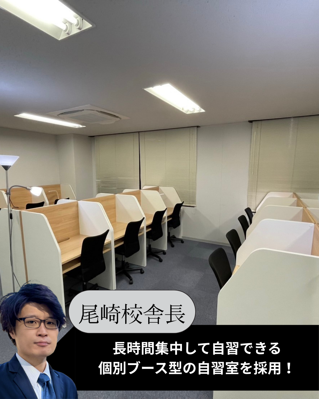 南千里校では、自習室の机に個別ブース型を採用。