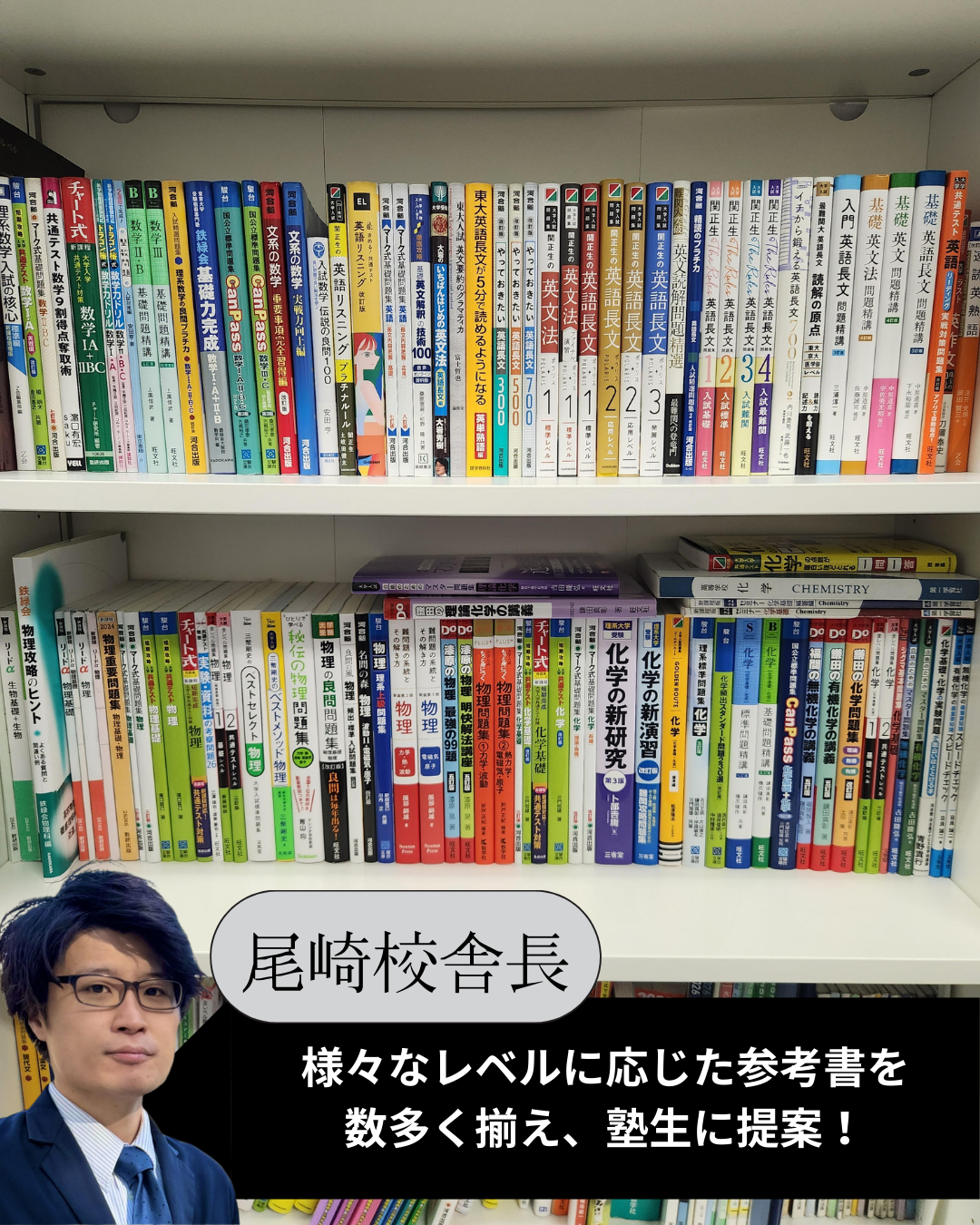 南千里校では、定期的に校舎長が生徒に必要な参考書等のヒアリングを行い、発注をしています。