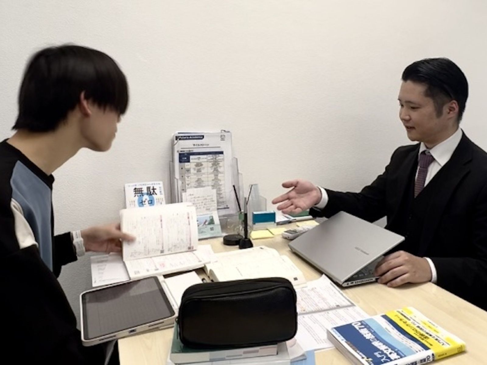 - 保護者様にもご参加いただく面談は年間4回実施しております。学習進捗確認・受験計画などをお話させていただく機会となっております。 また、生徒面談や来校時の声かけを積極的におこなっています。あまり自習室利用をされない生徒さんに対してはLINEグループを通じてコミュニケーションをとっています。