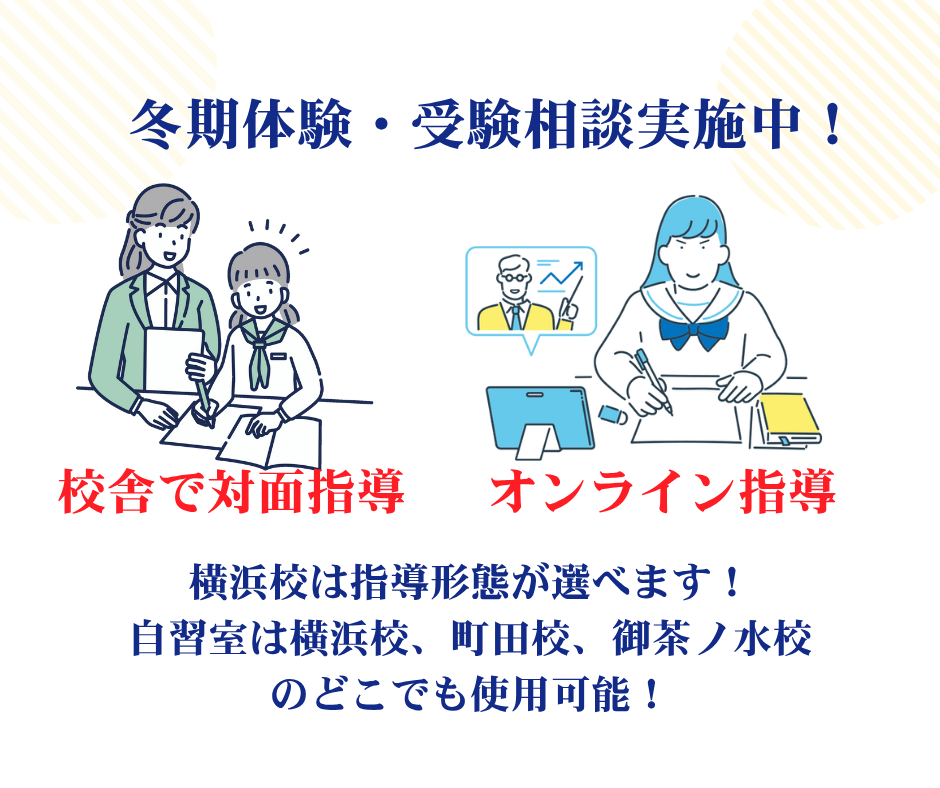 - 横浜駅で冬期講習をお探しの方必見! ポラリスアカデミア横浜校では、 2025年10月1日~2026年2月28日の期間で冬期体験を実施します。 「1週間無料体験」と「1ヶ月通塾体験プラン」 の2点を紹介します。 【1週間無 […]