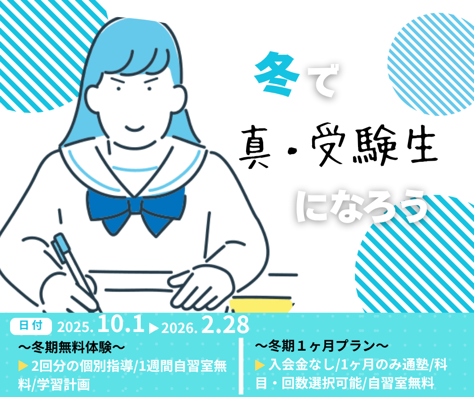 - 今年の冬は「1週間無料体験」と「1ヶ月通塾体験プラン」の2つから選べます!