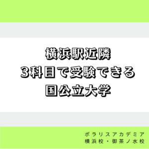 - みなさんこんにちは 学習管理型予備校ポラリスアカデミア横浜校です。 今回は横浜市周辺に お住まいの方へ オススメの横浜駅付近にある 3科目で受験できる国公立大学の紹介と その傾向、対策方法を紹介します。 国公立大学という […]